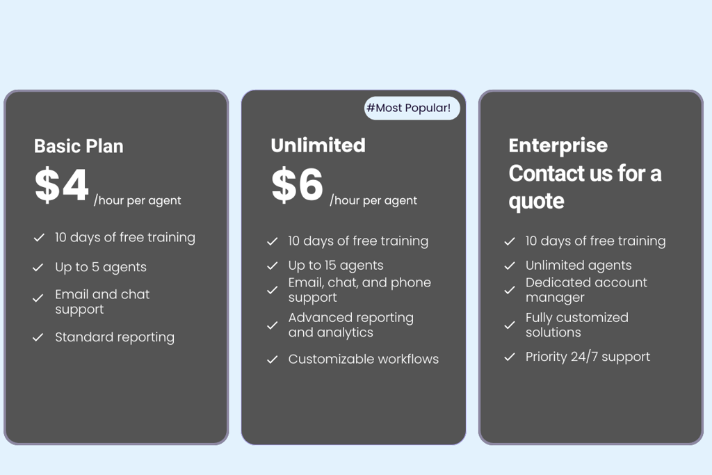 We provide expert support agents and virtual receptionists who manage customer interactions so you don’t have to.